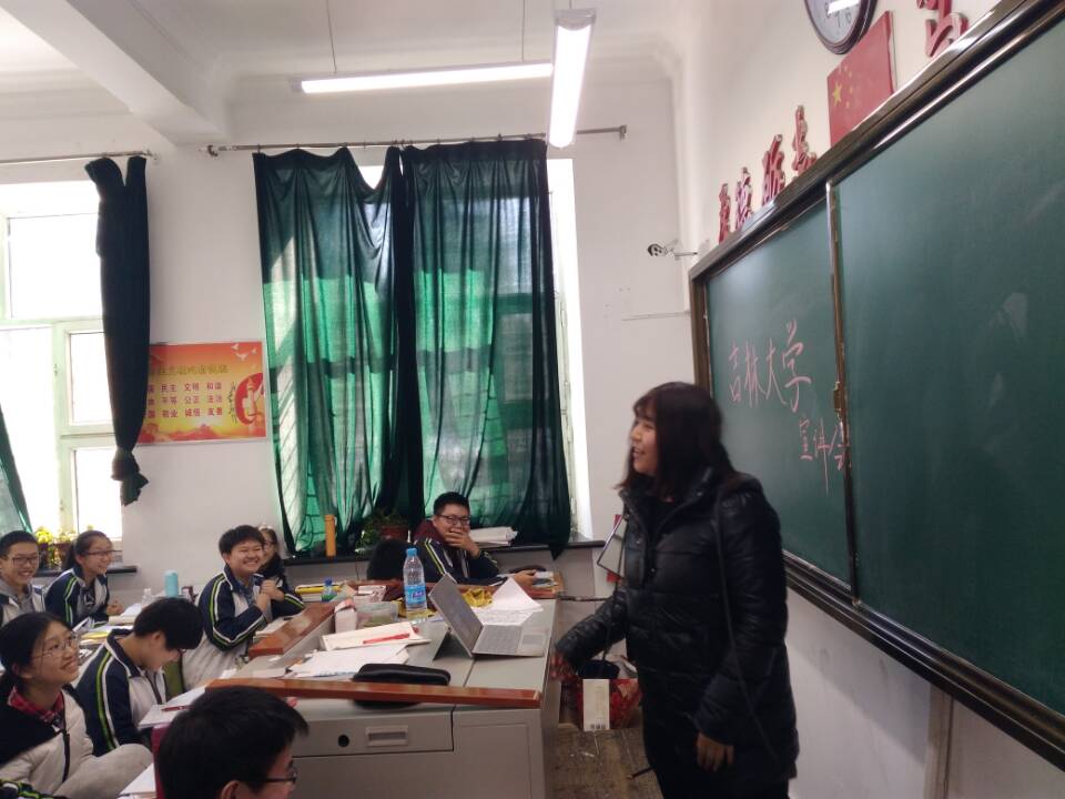 户外宣传结束后,徐泽华同学及其组员到学校报告厅进行宣讲。他们给师弟师妹介绍了学校丰富的教学资源,优质的团队力量,美丽的学校环境……但是由于时间问题,他们很快地就介绍完w88优德。即便如此,徐泽华同学的师弟师妹们还是都目不转睛的盯着PPT,眼神充满了对吉大的渴望。