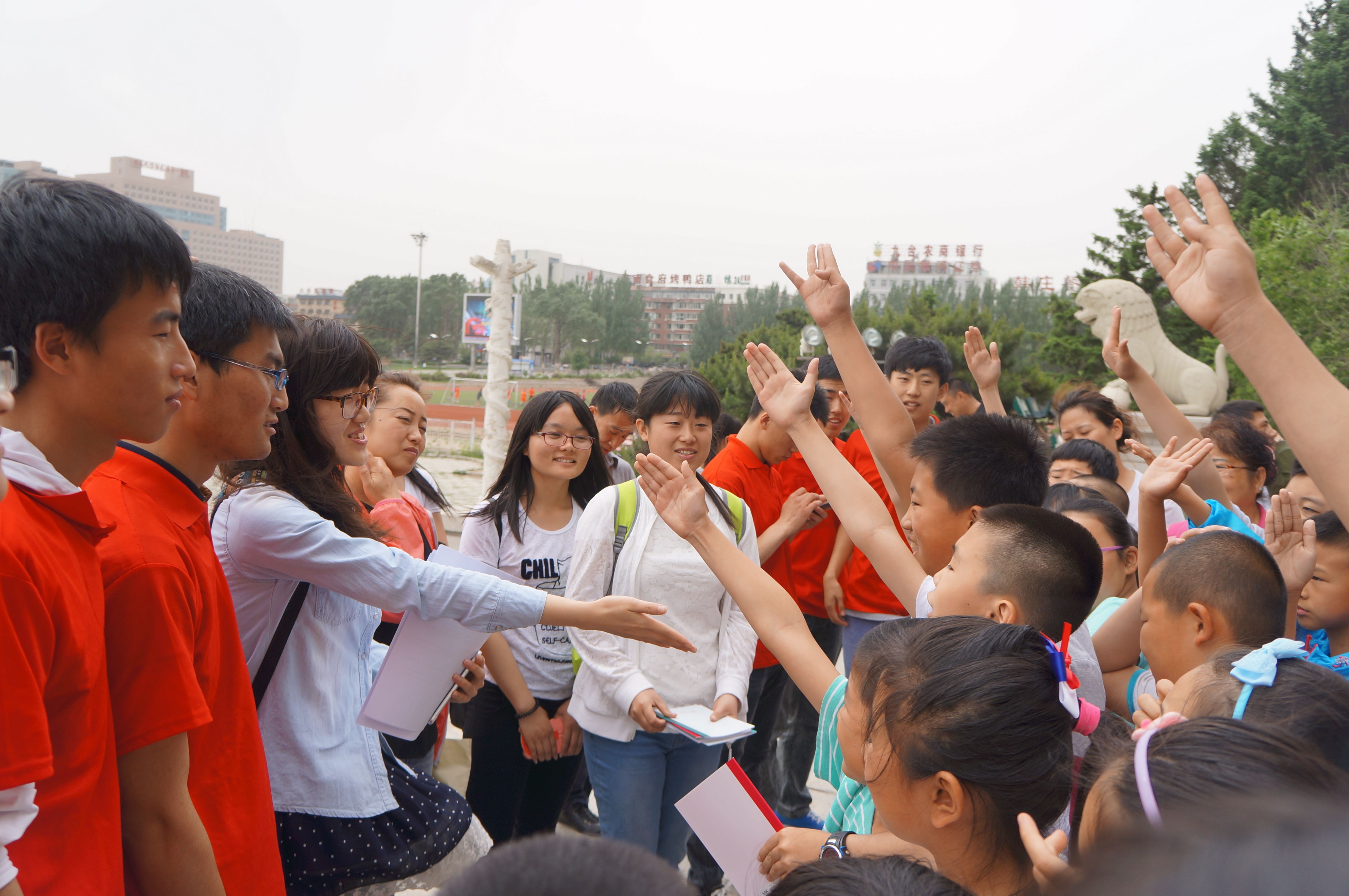 为了进一步贯彻共青团中央《关于开展“共青团关爱农民工子女志愿服务行动”的通知》精神,引导更多的青年人投入到关爱农民工子女的志愿服务活动中来,为农民工子女营造一个和谐健康的学习生活氛围。由校团委主办、w88优德团委承办的“双手托起希望,周末梦圆大学”农民工子女关爱活动于2015年5月31日在w88优德朝阳校区举办,当天下午,来自长春市安达小学的农民工子女在w88优德老员工志愿者们的带领下在文化广场地质宫门前开展了“双手托起希望,周末圆梦大学”素质拓展活动。