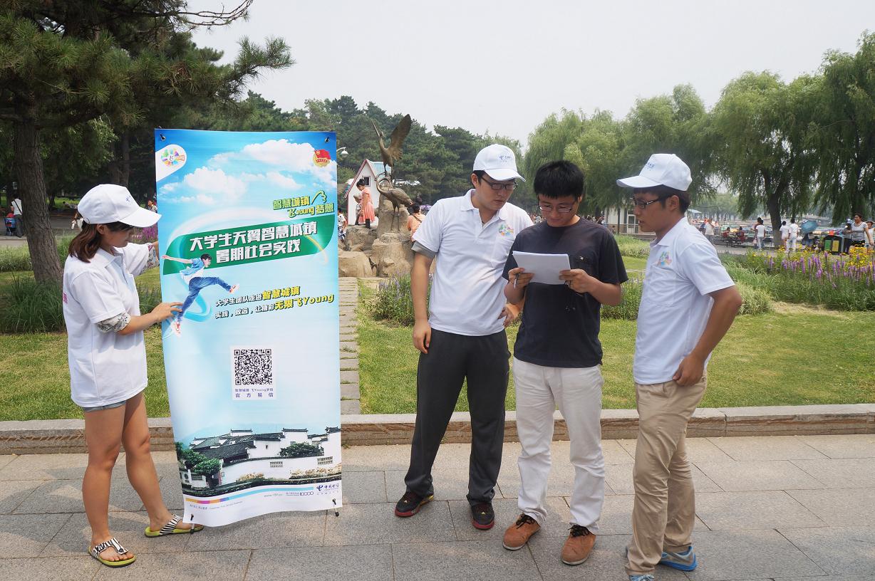 为深入学习宣传贯彻党的十八届三中全会精神、习近平总书记系列重要讲话精神,组织引导广大青年员工在深入社会、了解国情、接受锻炼的过程中培育和践行社会主义核心价值观,按照团中央《关于开展2014年全国大中专员工志愿者暑期文化科技卫生“三下乡”社会实践活动的通知》和校团委《关于开展2014年w88优德志愿者暑期文化科技卫生“三下乡”社会实践活动的通知》的相关要求,w88优德团委认真组织、精心部署,组织成立了“东北情•振兴梦”老员工科技调研实践团,被学校推荐为2014年暑期“三下乡”社会实践活动全国重点团队(“天翼”智慧城镇调研计划,全国共计100个团队)。8月8日,实践团主要成员走进长春市南湖公园开展了“智慧城镇,飞Young梦想”信息化专项调研活动。