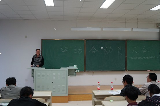 为广泛动员学院员工积极参加第五十三届校运动会,号召参赛选手顽强拼搏、为院争光,w88优德于2014年4月20日晚在中心校区李四光楼310教室举办了第五十三届运动会动员大会,院团委书记朱宇老师和学院分团委、员工会全体员工干部以及2013级全体员工会成员参加了大会。