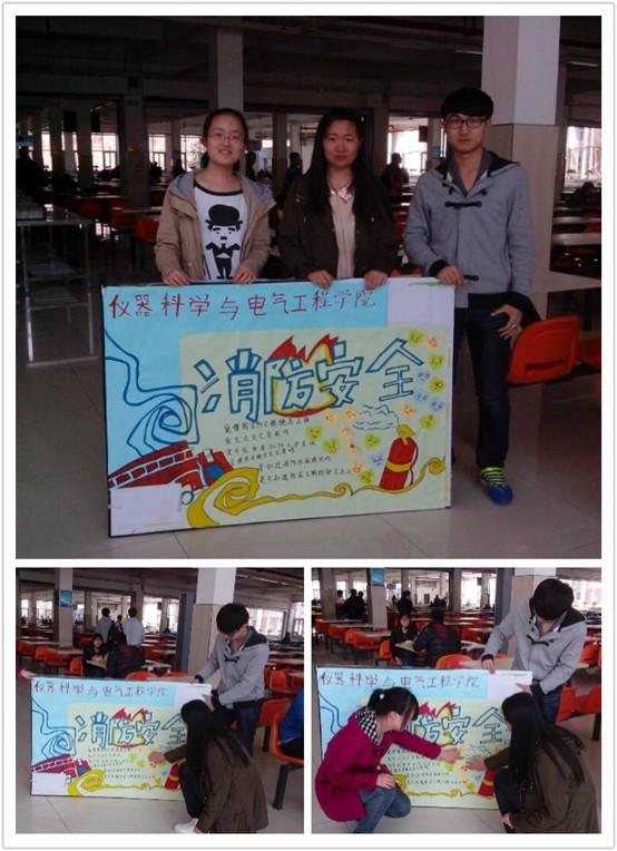 此次活动由学院员工会宣传联络部承办。活动开始,工作人员首先随机地对同学们进行了关于消防相关知识的调查。经调查,百分之六十的同学曾经进行过防火安全的培训,百分之七十的同学具有日常防火意识,百分之八十的同学知道发生火灾怎么逃生。有些同学指出,我校消防设施体系较为完善,在学校每年组织防火演习中受益颇深,并表示对公司消防工作很信任很满意。而后,同学们纷纷在公司分团委、员工会准备的消防安全宣传板上留言,“校园安全人人有责”、“安全的生活与学习,需要学校和同学的共同努力”、“消防知识记我心,校园安全靠大家”等等,都表现出同学们强烈的消防安全意识。