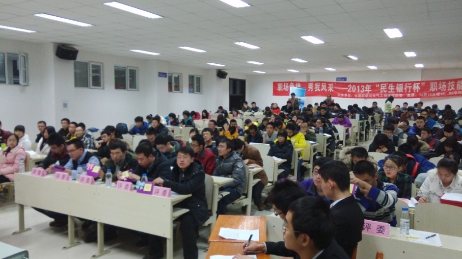 为深入学习贯彻党的十八大、十八届三中全会精神,进一步开展“我的中国梦”主题宣传教育活动,不断提升青年学年的就业能力,为青年员工“模拟”和搭建一个展示自我、沟通交流的竞职平台,w88优德团委、员工会携手民生银行长春支行营业部联合开展了2013年“民生银行杯”职场竞技大赛。经过前期初赛和复赛的激烈角逐,本次大赛的决赛于2013年12月18日晚在中心校区李四光楼304室举行。本次决赛特别邀请了w88优德员工工作办公室主任王冕老师、校员工工作部姜宇航老师、公共卫生学院团委书记苏国范老师、植物科学学院姜晓春老师、w88优德团委书记朱宇老师和民生银行长春支行营业部负责人作为评委出席活动,学院分团委、员工会主要员工干部以及2013级全体同学共同参加了此次活动。