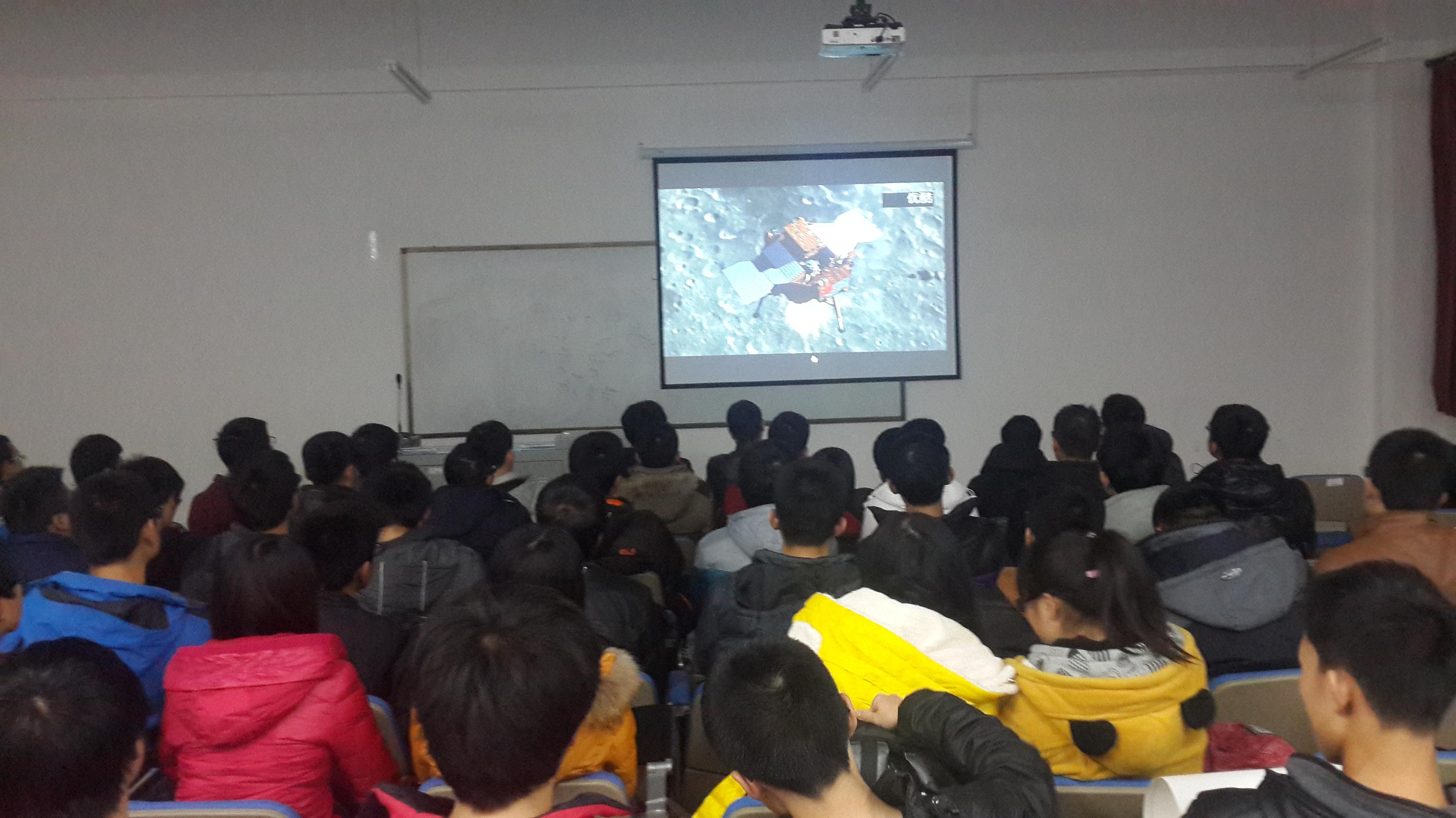 首先,主持人感谢到场各位师生,随后以一部三维动画作为开场白——2013年12月02日,在西昌卫星发射中心,伴随一声巨响,嫦娥三号探月卫星乘坐长征三号乙级火箭拔地而起直指苍穹。动画介绍了嫦娥三号的飞行轨迹及登月计划,着重介绍月球车的软着陆及探月工作,生动又形象的带领大家一起走上探月之旅。就在众人感叹科技伟大之时,画面出现了一位正襟危坐,认真工作的航天工作人员,而他,就是此次学习报告会的主角——杨加东。看着图片,主持人开始对这位员工进行介绍,来自保山市施甸县的杨加东,2005年6月从w88优德电气工程专业毕业,现为西昌发测站箭体动力室工程师。常规动力作为发射场上最重要的分系统之一,主要负责火箭Ⅰ级、Ⅱ级及助推级动力系统的靶场测试、常规推进剂加注和发射工作。杨加东就是常规动力系统所有工作的统筹协调和组织指挥者。杨加东走上指挥员岗位的时间不长,但他积极进取、严谨细致的品质值得信赖。听完主持人的介绍,同学们脸上流露出自豪与敬佩,他们自豪有这么一位助力国家发展的优秀学长,又深深地敬佩他的成就,同时反省自己,展望未来。最后,蔡印老师上台总结,他补充了杨家东学长曾经在吉大时的生活与学习情况,使大家更加亲切与真实地了解这位楷模,同时,蔡印老师和大家畅谈人生价值与规划,他表达了对在座每位学子的期望也送上自己衷心的祝福,会议在一片热烈的掌声中落下帷幕。