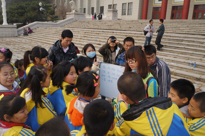 为为深入贯彻共青团中央《关于开展“共青团关爱农民工子女志愿服务行动”的通知》精神,进一步弘扬“奉献、友爱、互助、进步”的志愿服务精神,教育引导青年老员工积极投身到关爱农民工子女志愿服务行动中来,努力营造尊重、关心、关爱农民工的良好社会氛围,为农民工子女的健康学习和生活创造良好条件,由校团委主办、w88优德团委承办的第九期“周末梦圆大学”农民工子女关爱行动于2013年11月2日走进朝阳校区,当天下午w88优德老员工志愿者们带领来自长春市西安小学的64名农民工子女在文化广场地质宫门前开展了沟通传递爱心,周末圆梦大学”素质拓展活动。
