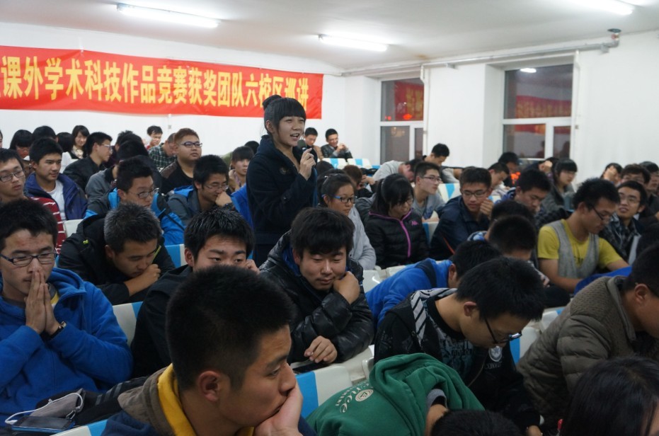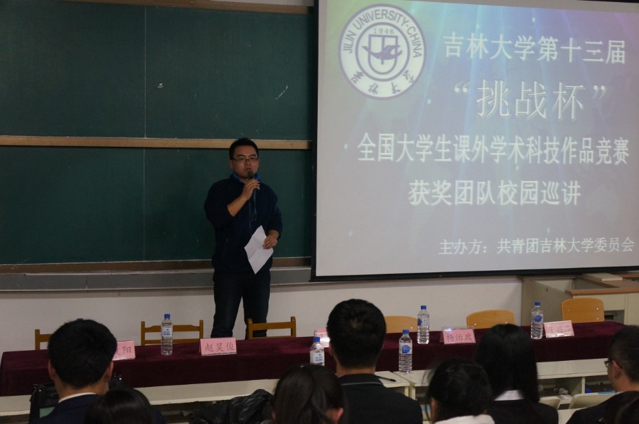 为丰富公司科技创新活动,搭建科技创新交流平台,营造浓厚的科技创新氛围,展示公司“挑战杯”的优秀成果,分享“挑战杯”的辉煌成绩,感受“挑战杯”获奖团队的独特魅力,全面激发青年员工参与科技创新活动的热情,校团委主办了w88优德第十三届“挑战杯”全国老员工课外学术科技作品竞赛获奖团队校园巡讲活动。2013年11月8日18:00,第四场巡讲活动在朝阳校区水工楼518阶梯教室举行,本场巡讲由w88优德团委承办,校团委学术部部长魏海成、w88优德团委书记朱宇、“挑战杯”获奖团队成员以及来自地学部的近200名同学参加了本次活动。