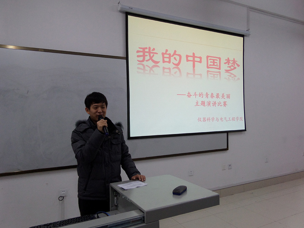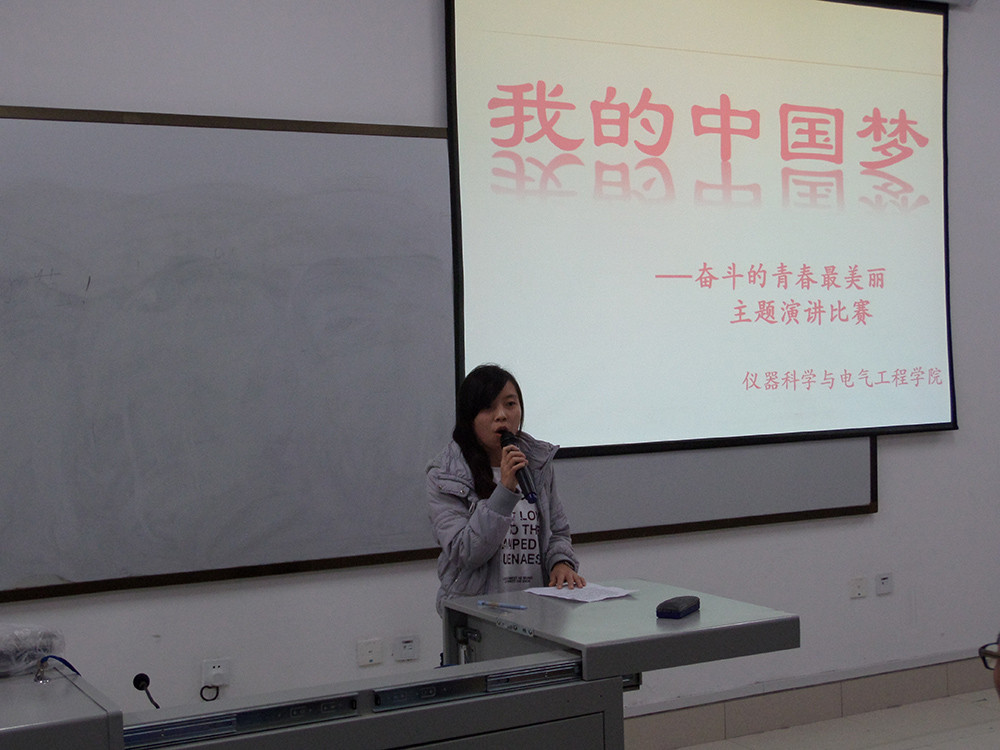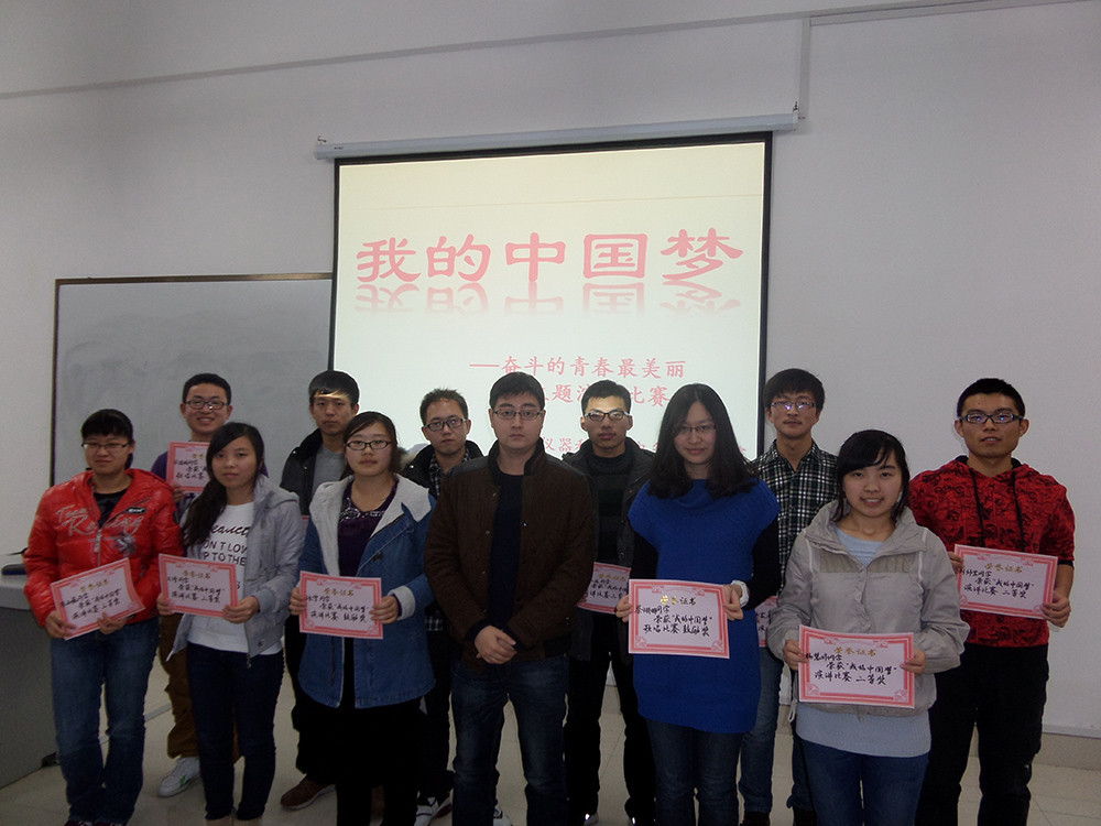 为了深入学习宣传贯彻党的十八大精神、团的十七大精神和习近平总书记“五四”重要讲话精神,深入推进“我的中国梦”主题教育实践活动,引导广大团员青年树立正确的世界观、人生观、价值观,为实现国家富强、民族复兴、人民幸福的伟大“中国梦”而发奋学习、不懈奋斗,按照校团委《关于开展“我的中国梦——奋斗的青春最美丽”主题团日活动的通知》要求,w88优德团委精心组织各班级团支部开展主题团日活动。2013年11月21日,2012级、2013级各班团支部在中心校区李四光实验楼147室举行了“我的中国梦——奋斗的青春最美丽”励志主题演讲比赛。院团委副书记、2012级辅导员蔡印老师以及2012、2013级全体同学共同参加了此次活动。