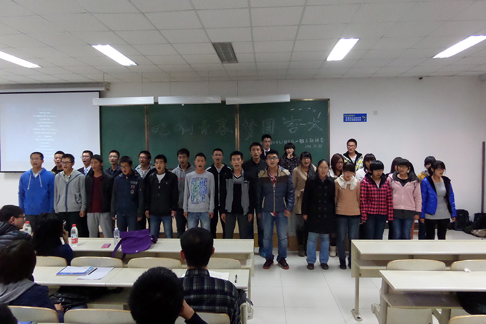 班会首先由主持人岳良广同学致开场词,伴随着奥运会上刘翔夺冠的视频,一班的主题班会正式开始。接下来,同学们共同观看了由一班同学自导自演拍摄的青春励志视频短片,短片中的一班同学均表现出了自己积极向上、诙谐幽默、朝气蓬勃的一面。随后,同学陆续登台进行了现场才艺展示,施斌同学的竹箫独奏《相思曲》,让同学们沉浸在了如梦似幻的境界中;丁芃同学的葫芦丝演奏的青春歌曲大串烧,让同学们感受到了青春的美妙;而刘磊同学用他的肺腑之言汇成了《放飞青春》的演讲,让同学们对青春又多了一层感悟。最后,2013级一班全体同学上台齐声共唱他们的班歌——《站起来》,在整齐有力的班歌声中结束了此次班会。