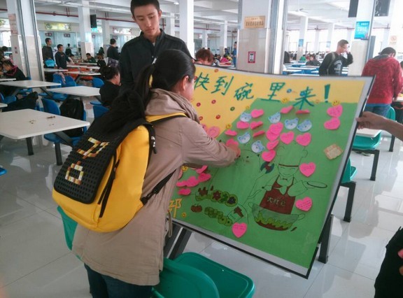 新学期伊始,为了更好地了解广大同学对学校餐饮生活的看法,切实维护广大同学的合法权益,积极协助学校后勤职能部门提升服务水平,w88优德团委于2013年9月27日中午在中心校区各食堂开展了“微笑,快到碗里来”餐饮生活大调查活动,让莘莘学子在享受食堂美肴的同时广泛抒发自己的意见与建议。