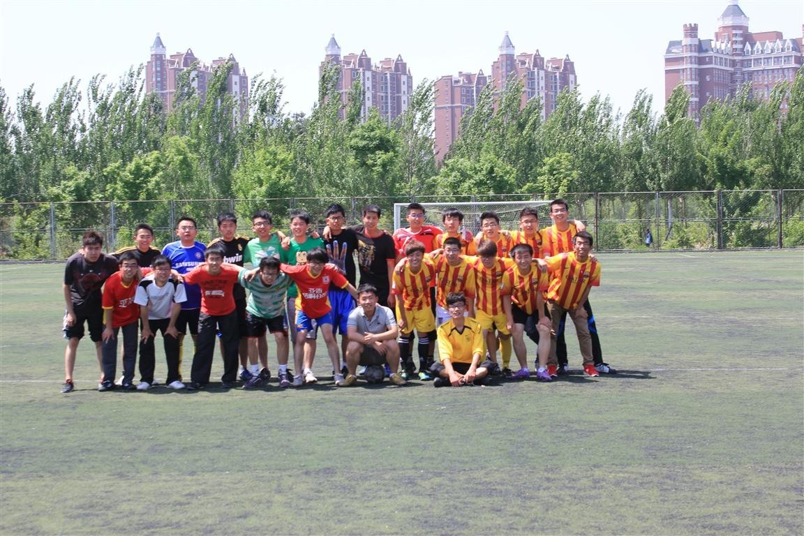 比赛前,双方队员做好热身准备后,裁判一声哨响,比赛正式开始。比赛伊始,双方都打得比较保守,处于试探性阶段。随着双方相互的了解,比赛开始激烈起来,双方球员也渐入佳境,不时打出精妙的配合。比赛进行得十分激烈,双方各不相让,进攻、防守,你来我往,精彩纷呈,比分一直非常胶着,凭借着童永君的梅开二度上半场结束时测控队2:1领先电气队。下半场易边再战,双方进攻更加激烈,电气队首先由侯鹏禁区内劲射扳平比分。然而仅仅两分钟后,测控队凭借着朱宇老师的任意球助攻再次将比分反超,双方战成3:2;之后的比赛进入到白热化阶段,电气队打出了一波又一波精彩的进攻,并由王翀和侯鹏各入一球,将比分扳为4:3;测控队队员们毫不气馁、顽强拼搏,在比赛临近结束前,由关钊助攻童永君将比分扳平,双方最终以4:4握手言和。整场比赛中,观众队员们也激情洋溢,不停地为双方队员们加油助威,现场气氛十分热烈。比赛结束后,2011级辅导员朱宇与现场同学们一起在赛场上留影纪念。
