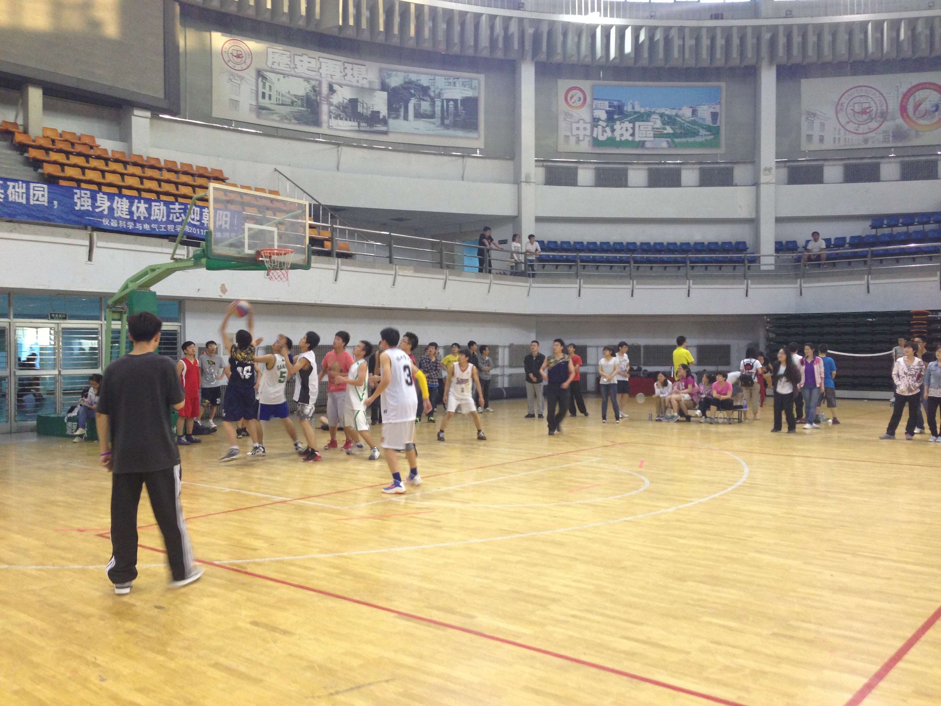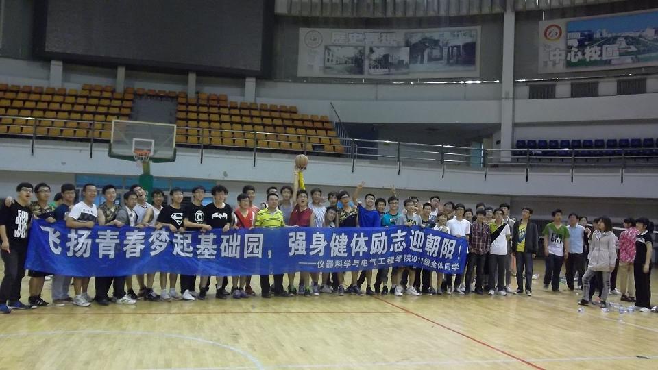 为全面贯彻落实《中共中央国务院关于加强青少年体育增强青少年体质的意见》重要精神,进一步丰富和活跃青年员工的体育文化生活,提高同学们的身体素质,增强同学们的凝聚力,w88优德2011级于2013年6月3日晚在中心校区体育馆成功举行了以“飞扬青春梦起基础园,强身健体励志迎朝阳”为主题的阳光体育系列活动之篮球友谊赛。此次比赛按照专业分为两队,分别是测控技术与仪器队和电气工程及其自动化队,2011级辅导员朱宇及2011级各班级同学在现场观看了比赛。