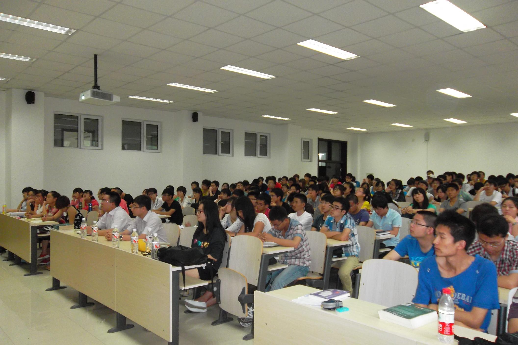 在讲座上,余洋同学热情真诚地与学弟学妹们就国外研究生申请以及大学学习生活规划两方面问题进行了交流和分享。针对目前不少同学有出国留学的想法和计划的情况,余洋就申请国外研究生的具体流程进行了详细讲解,具体从决定、考试、选校、申请、递交材料、签证、中介以及关于出国的误区进行了说明。他强调大家要清楚认识出国的意义其实是“自身的投资”,是为了未来更好地奋斗;为了生动具体地讲解留学申请过程,余洋还“独具匠心”地以网络申请世界著名的哈佛大学流程为例,为大家进行了具体演示。在讲座中,余洋始终强调英语学习和专业学习的重要性,并反复强调“奋斗”精神对青年的重要性,他鼓励大家在大学期间要坚定目标、努力学习、认真钻研、不断创新。此外,余洋结合自身实际为大家介绍了国外公司产品体制与国内的差别。最后,他鼓励大家树立明确的学习目标并坚持不懈地为之奋斗,勉励大家要珍惜老员工活,培养自己的爱好,努力学习,为自己的“成才梦”和伟大的“中国梦”而不懈奋斗。整场讲座,余洋用亲近平和而又不失幽默的语气娓娓道来,其精彩的讲解赢得了在场同学阵阵热烈的掌声。最后,朱宇对整场讲座进行了总结,在肯定余洋同学所取得优秀成绩的同时,朱宇对他真诚耐心地为学弟学妹们答疑解惑、分享经验表达了感谢。朱宇同时指出,青年员工不应只是幻想未来,应该在树立个人理想的基础上,拥有伟大的梦想,因为梦想比理想更加远大而神圣;当代青年作为未来祖国建设和发展的接班人,应该培养“胸怀天下、敢于担当”的品质,努力将个人成才梦想融于到“中国梦”的伟大实践进程中,并为之坚持不懈、努力奋斗。