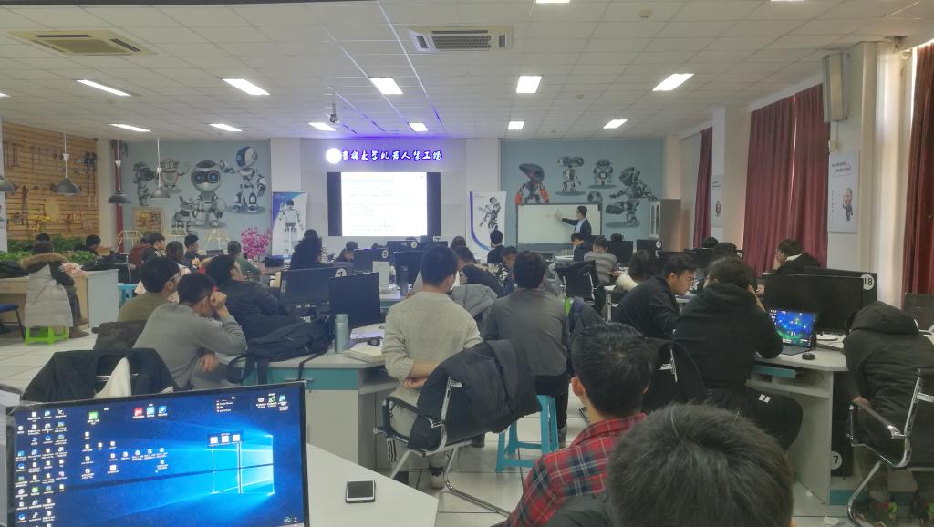宣讲大会结束之后,丰富多彩的冬令营生活随即展开。田宝凤老师针对基础电路知识体系的构建,以电子测量为主题,介绍了测量误差分析、数据处理以及基础电子物理量的测量,随后又结合频率合成的相关知识,对DDS的原理和应用进行了详细的讲解。之后,蒋川东老师针对误差分析这一课题,对三种误差的分析和处理进行了更加深刻的讲解,使参加此冬令营的员工们受益匪浅。随后几天,培训地点转移到李四光楼501室,腾飞老师带领员工们学习并认识了ARM处理器,并且耐心认真的讲解了Keil软件的操作方法以及GPIO和中断函数的应用,员工们在腾飞老师的引导下,认真努力地学习和操作实践,最终都学到了不少知识,为以后的电子设计比赛做好了充分的准备。随后,周志坚老师在电路分析和数字电路知识的基础上,带领员工了解并认识了模拟电路课程,针对理想运算放大器这一电子器件,老师对其特性和应用进行了详细的讲解,在此基础上引导员工进行简单的电路设计,员工们积极思考,并对部分疑难点提出了困惑,老师旁征博引,耐心解释,最终顺利的解决了员工们的困惑。