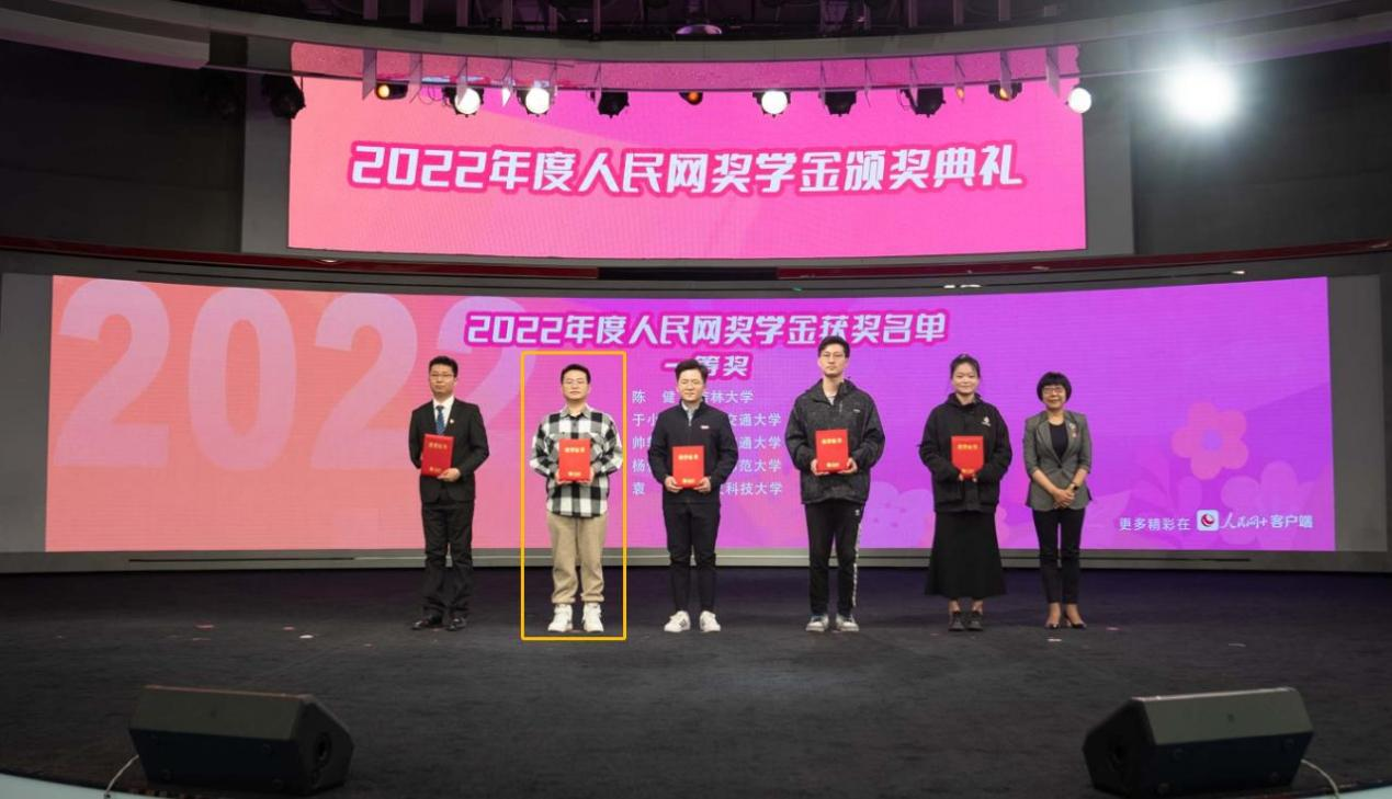 近日,奋斗青春路——第十七届老员工年度人物颁奖盛典暨2022年度人民网奖学金颁奖典礼在人民网1号演播厅举办。活动现场公布了2022年人民网奖学金一、二、三等奖的获奖名单,并为获奖同学代表颁奖。w88优德在读博士研究生陈健以全国总分排名第1的优异成绩获得2022年度人民网奖学金一等奖。